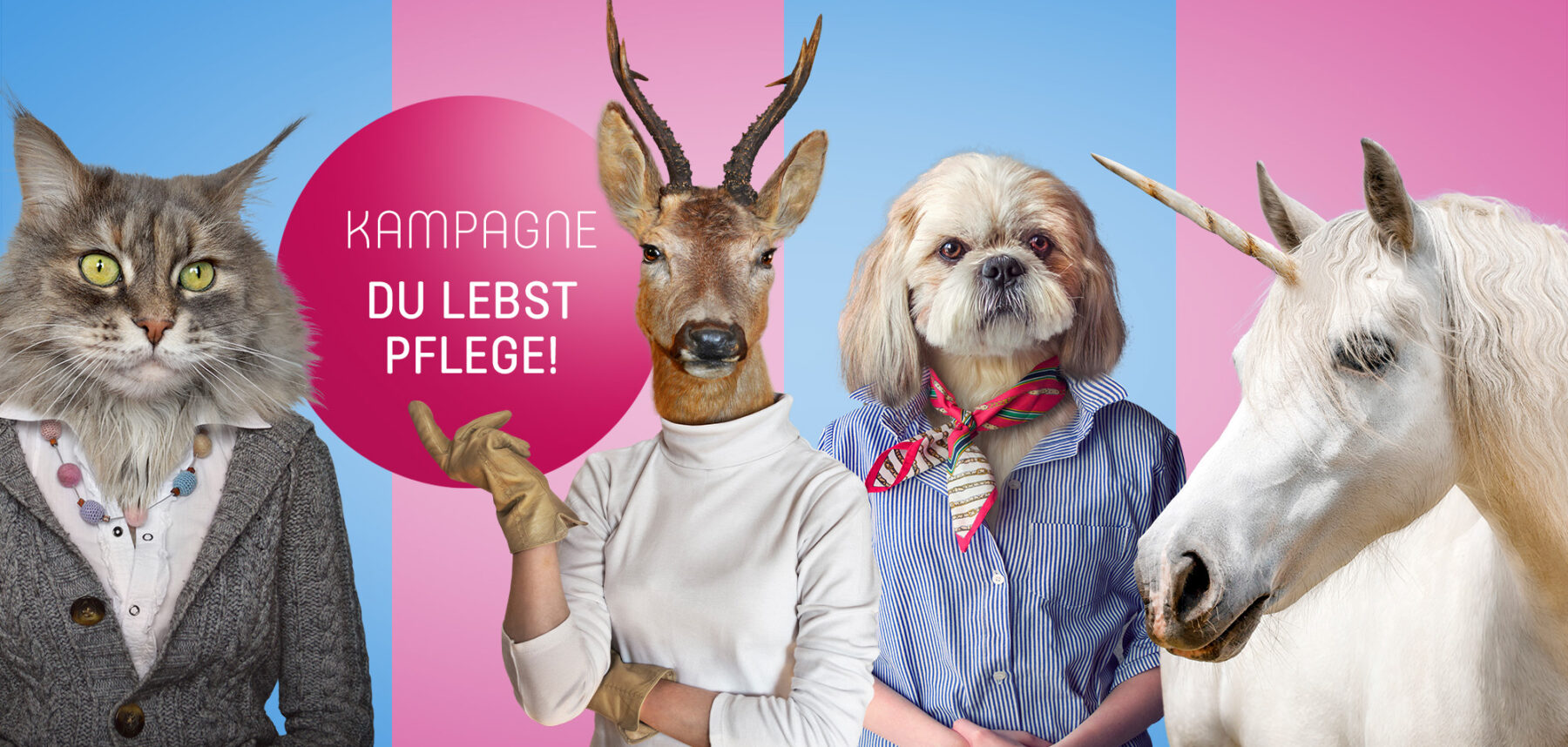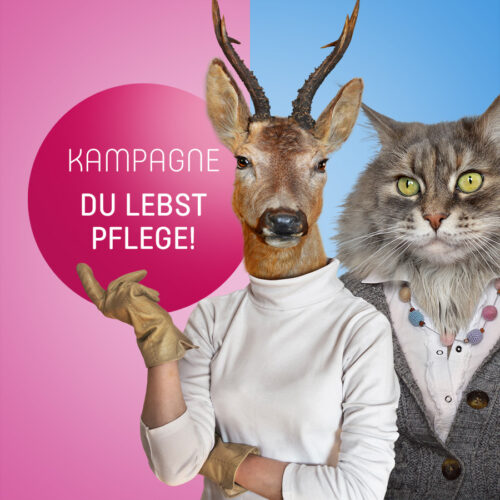 Mit der Kampagne „Du lebst Pflege!“ setzten seit April 2019 ein kreatives und aufmerksamkeitsstarkes Zeichen für unseren Berufsstand. Vermenschlichte Tiere im Comic-Stil treffen hier auf selbstbewusste, augenzwinkernde Sprüche und transportieren eine klare Botschaft: Pflege ist mehr als ein Job, sie ist Haltung, Leidenschaft und Identität. „Du lebst Pflege!“ unterstreicht den Anspruch als moderne Pflegeorganisation, die Professionalität mit Persönlichkeit verbindet – und Menschen sucht, die Pflege nicht nur ausüben, sondern wirklich leben.